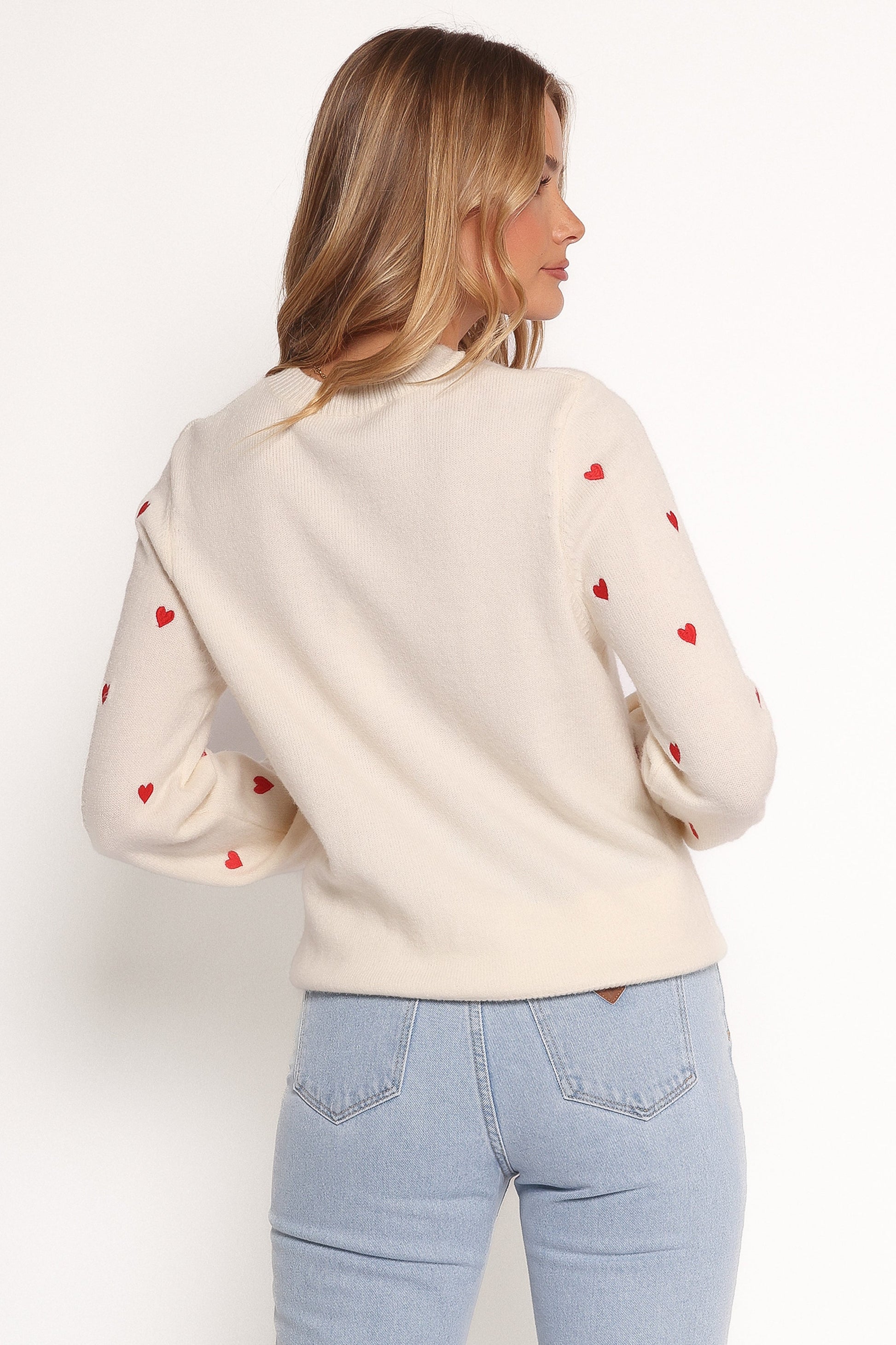 Xadie All Over Mini Heart Sweater - Cream/Red