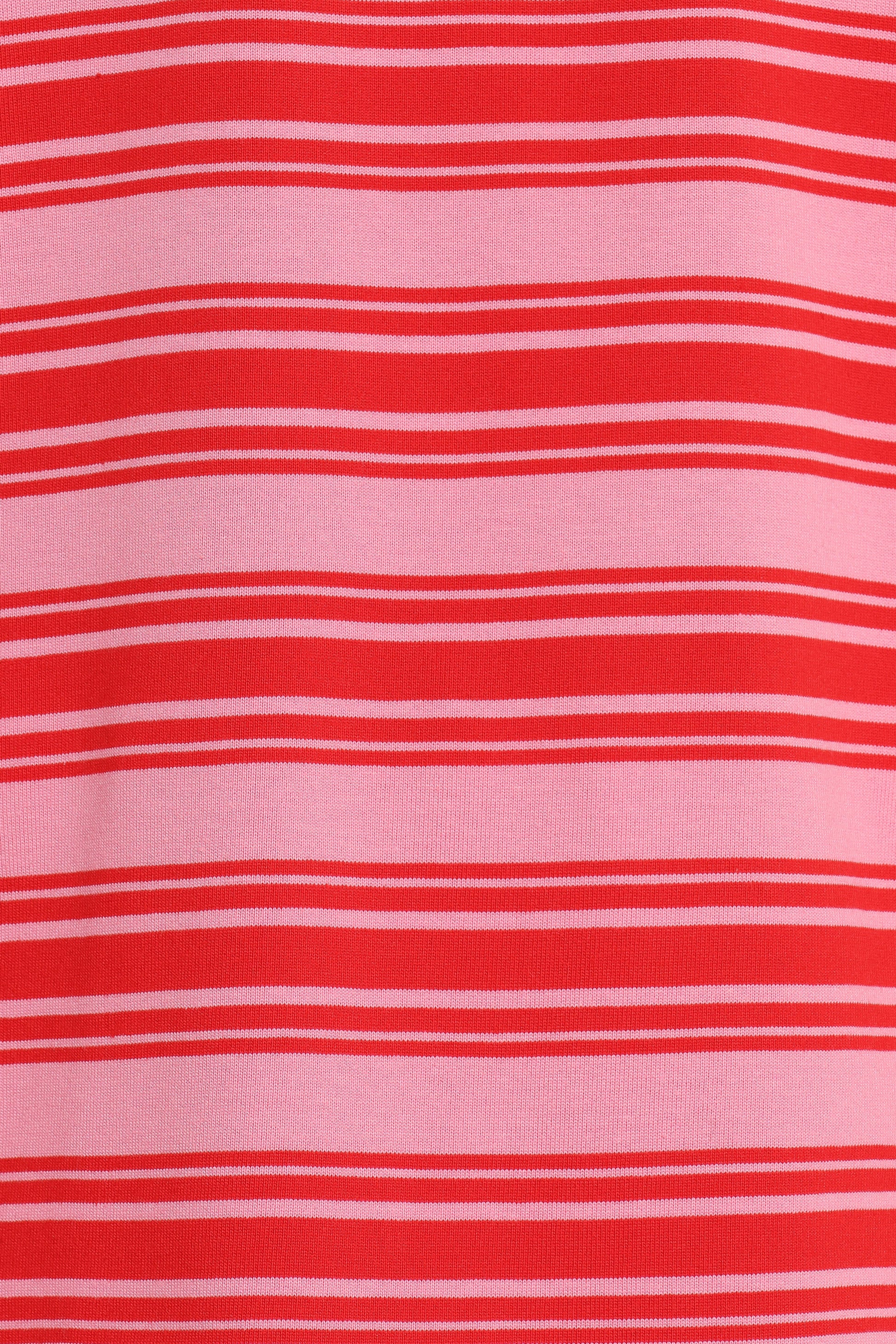 DETAILS Featuring a trendy oversized fit with a crew neckline and short sleeves, this tee is designed to keep you comfortable and stylish all day long. The bold pink and red stripe detail perfectly pairs with your favourite high-waisted jeans or layering over bike shorts for a laid-back, on-trend look.