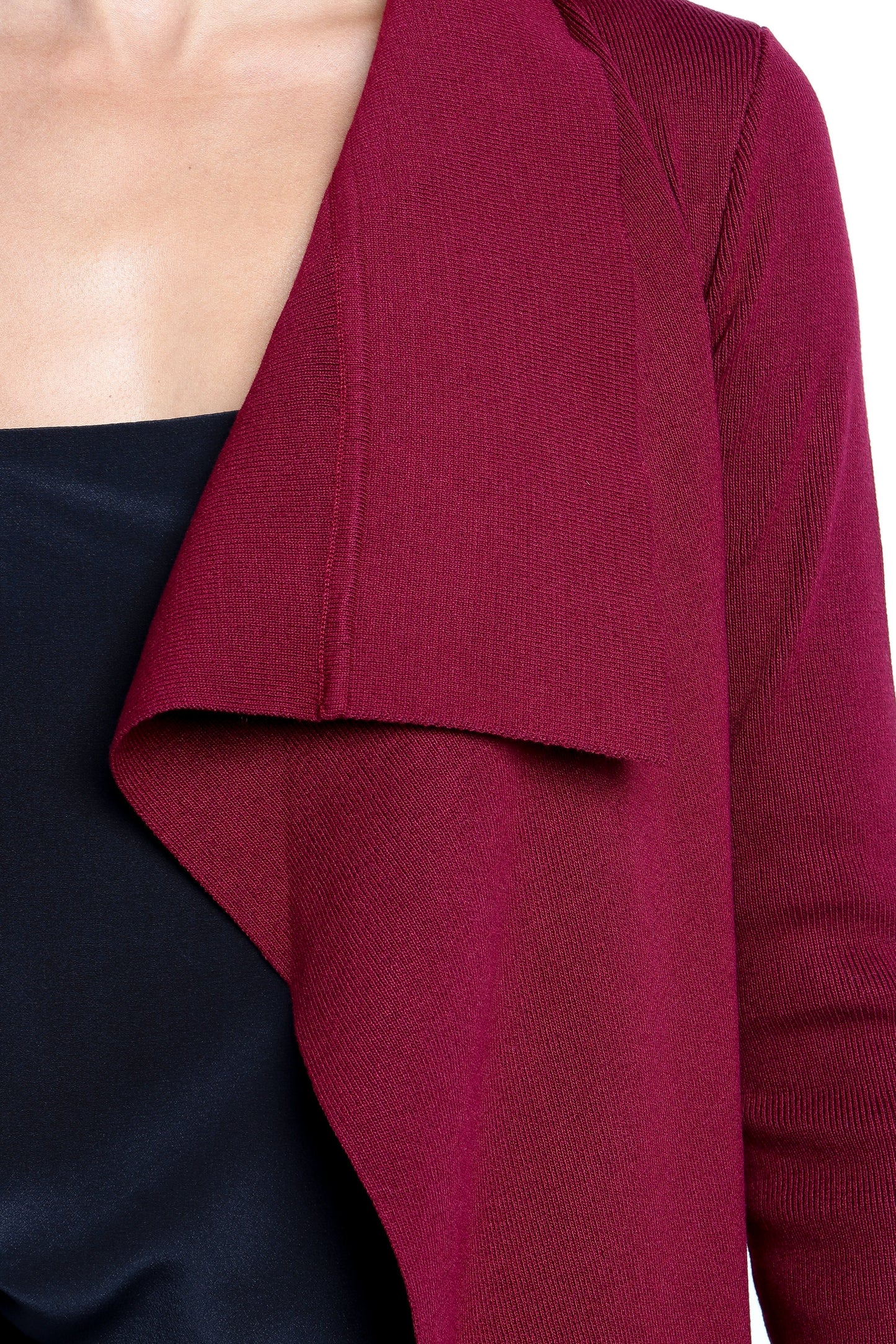 DETAILS This stretch knit cardigan is the perfect way to add a flirty touch to any outfit! Featuring long sleeves and a wide collar, it's perfect for adding just the right amount of coverage. The waist tie gives you an adjustable fit that flatters your figure, while the waterfall style front adds an elegant touch.